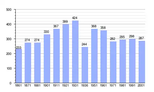 | Gráfica de evolución demográfica de Cornalba entre 1861 y 2001 |