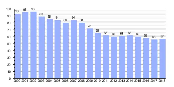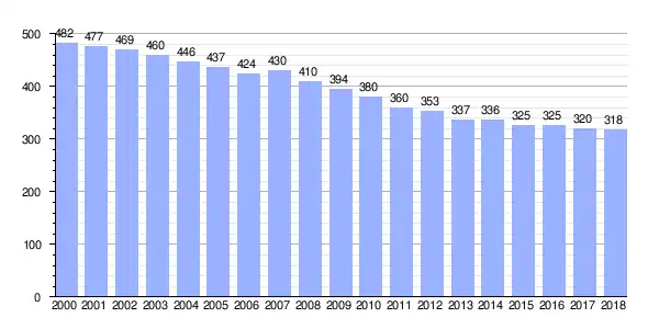 | Gráfica de evolución demográfica de Corneira (parroquia) entre 2000 y 2018 |