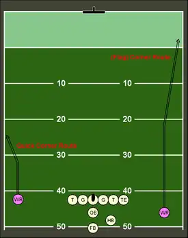 Una ruta corner es un patrón seguido por un receptor en el fútbol americano, donde el receptor corre dentro del campo contrario y gira en ángulo de aproximadamente 45°, alejándose del quarterback hacia la línea de banda. Usualmente, el pase es utilizado cuando un defensive back está jugando alineado con el hombro interno del receptor, creando un enfrentamiento "uno a uno". La ruta corner tiene menos probabilidades de intercepción comparada con la ruta slant, porque el balón se lanza lejos de la parte media del campo de juego. Esta ruta es usada frecuentemente en el esquema ofensivo West Coast, donde la clave son los pases rápidos y certeros. También puede ser usada cerca de la línea de gol en lo que se conoce como "fade". El quarterback solo "bombeará" el balón sobre un jugador defensivo derribado para que sea atrapado por un wide receiver en una de las esquinas posteriores de la zona de anotación.