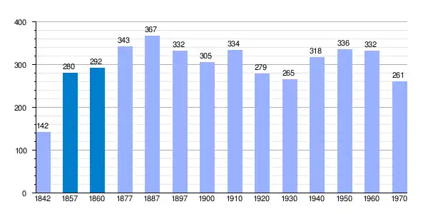| Gráfica de evolución demográfica de Corporario[9] entre 1842 y 1970 |