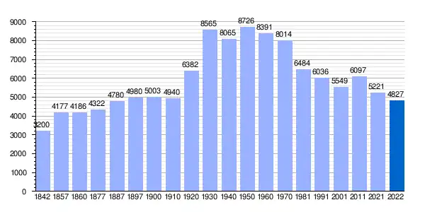 Población de derecho (1842-1991, excepto 1857 y 1860 que es población de hecho) o población residente (2001-2021) según los Censos de Población desde 1842. Población según el padrón municipal de 2022 del INE. |