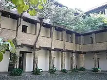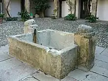 Tras el zaguán, cubierto con una bóveda de mocárabes que conserva algún resto de policromía, se accede al patio. Éste, de planta cuadrangular, es funcional y sin excesos decorativos. En su centro se sitúa una pila de piedra provista de dos caños.