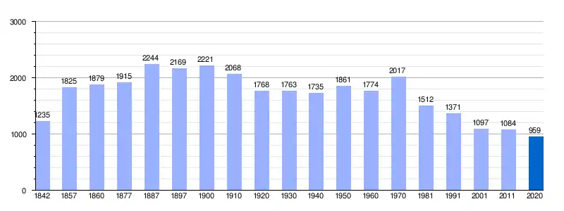 | Gráfica de evolución demográfica de Corrales del Vino[12] entre 1842 y 2020 |
