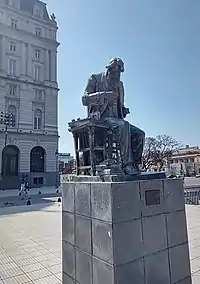 Sobre esa plaza se encuentran, sobre la calle de la entrada principal al Palacio, algunas esculturas relacionadas con el correo. Una de ellas fue costeada por los Telegrafistas Argentinos y Empleados del Palacio del Correo de la Capital: se trata de la escultura del belga Luis Bruninx en homenaje a Samuel Morse, inventor del telégrafo, que fue realizada en 1915 y que originalmente se hallaba en el hall central del Palacio del Correo.