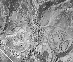 Se sitúa en un lugar oculto y quebrado, recostado sobre una hospitalaria solana, amparada esta por los cerros que se despliegan a sus espaldas y teniendo a la cadena de los Picos de Gobea como horizonte.