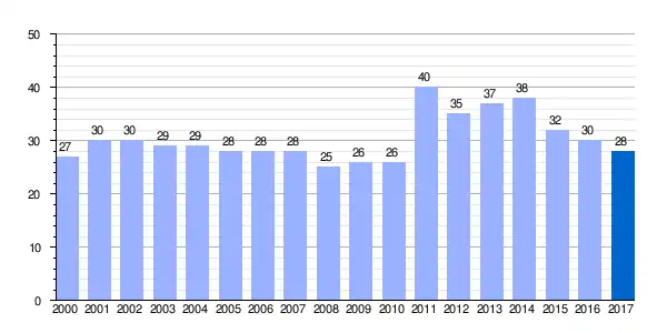| Gráfica de evolución demográfica de Corro[1] entre 2000 y 2017 |