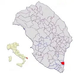 Ubicación de la ciudad de Corsano dentro de la provincia de Lecce.