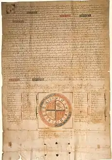 - Se dispuso que el alguacil del rey, los notarios, los escribanos y los alcaldes, todos ellos miembros de la cancillería, deberían residir en un barrio exclusivo,[18] y que el posadero real debería hacer cumplir dicha orden en los lugares donde residiera el rey.[19]