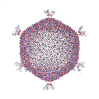 Albergan dicha información genética en una cápside carente de envoltura viral y estructuralmente definida por una simetría compleja, con aspecto esférico o subesférico y rica en lípidos.[3] La cápside icosaedra tiene un diámetro de 60 nm y presenta una membrana lipídica interna situada entre las cubiertas de proteínas exterior e interior.[4] Las cubiertas se componen de tres capas, con superficies que revelan un patrón con características distintivas,[5] incluyendo protuberancias de tipo espiga en los doce vértices.[6]