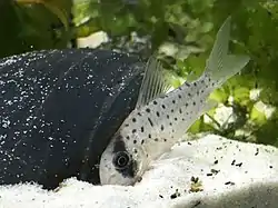 - Esta obra contiene una traducción derivada de «Corydoras atropersonatus» de Wikipedia en catalán, publicada por sus editores bajo la Licencia de documentación libre de GNU y la Licencia Creative Commons Atribución-CompartirIgual 4.0 Internacional.