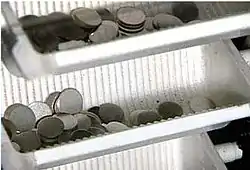 Antiguamente se empleaba para acuñar, con un martillazo, el anverso y el reverso de una moneda.[3][4][5] Se preparaba para cortar un riel en discos delgados en bruto, según la composición de la aleación convenida por la autoridad monetaria de la ceca.