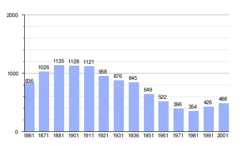 Gráfica de evolución demográfica de Cossombrato entre 1861 y 2001