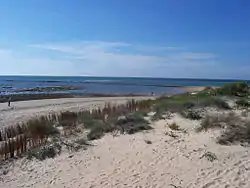 • La Playa de la Costilla, merecedora siempre de la bandera azul por la excelente calidad de sus arenas doradas y de un mar limpio que invita al baño, además de poseer año tras año, desde 2006, la importante distinción de la "Q" de calidad,[11] que garantiza el control de los servicios de seguridad, salvamento, ocio, vigilancia de aguas, información, limpieza, accesibilidad, así como de los chiringuitos, al mismo tiempo que tiene en cuenta las condiciones higiénicas, los niveles de calidad medioambiental de su arena y aguas, y la gestión y tratamientos de aspectos medioambientales, entre otros asuntos.