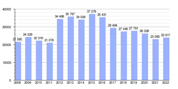 Gráfica de evolución demográfica de Rota[14] entre 1842 y 2021