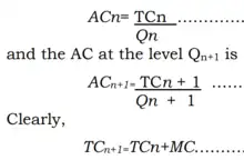Supongamos que el punto de partida del nivel de producción es . El coste marginal es la variación del coste total de una producción adicional (()ª unidad). Por lo tanto: (consulte la Figura 3; en donde es el costo medio(), es el costo total(), es el nivel de producción(), es el costo marginal).