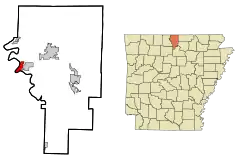 ![]() Localización en el Condado de Baxter y en el estado de Arkansas | ||