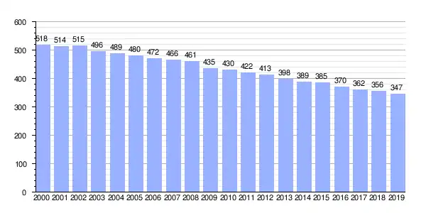 | Gráfica de evolución demográfica de Coucieiro entre 2000 y 2019 |
