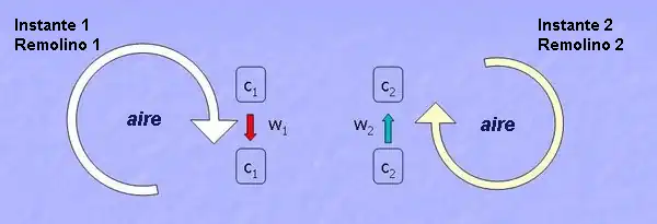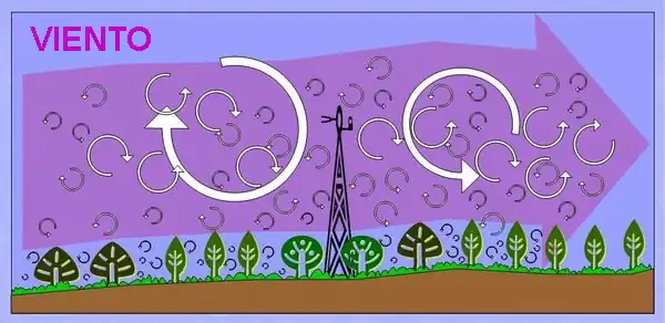 El flujo de aire se puede imaginar como un flujo horizontal de numerosos remolinos giratorios, es decir, vórtices turbulentos de varios tamaños, teniendo cada remolino componentes horizontales y verticales. La situación parece caótica, pero el movimiento vertical de los componentes se puede medir desde una torre de observación.