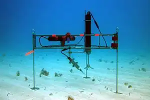 La técnica también ha demostrado ser aplicable bajo el agua a la zona béntica para medir los flujos de oxígeno entre el fondo del mar y el agua suprayacente.[8] En estos entornos, la técnica se conoce generalmente como técnica de correlación de remolinos, o simplemente correlación de remolinos. Los flujos de oxígeno se extraen de mediciones sin procesar siguiendo en gran medida los mismos principios que se utilizan en la atmósfera, y normalmente se utilizan como indicador del intercambio de carbono, que es importante para el cálculo de los flujos de carbono locales y globales. Para la mayoría de los ecosistemas bentónicos, la correlación de remolinos es la técnica más precisa para medir los flujos "in situ". El desarrollo de la técnica y sus aplicaciones bajo el agua sigue siendo un área de investigación fructífera.[9][10][11][12][13]