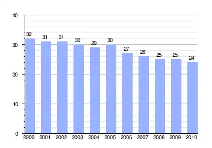 Población de derecho (2000–2010) según los censos de población del INE a 1 de enero de cada año.[3] |