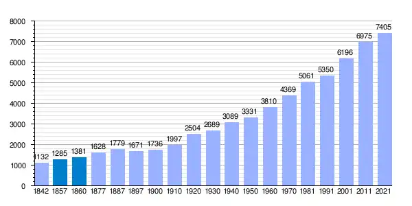 | Gráfica de evolución demográfica de Cox[7] entre 1842 y 2021 |
