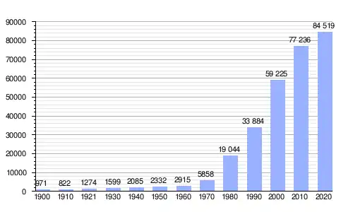 | Gráfica de evolución demográfica de San Miguel de Cozumel entre 1900 y 2020 |