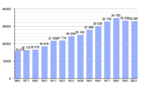 | Gráfica de evolución demográfica de Crema entre 1861 y 2001 |