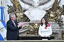 - Clarín.com (9 de julio de 2022). «María Eugenia Vidal calificó de cínico a Alberto Fernández y dijo que pelea por poder con Cristina Kirchner 'mientras el barco se hunde'». Clarín. Consultado el 18 de julio de 2022.