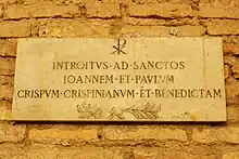 ![]() Fresco de los mártires Crispo, Crispiniano y Benedicta junto a varios soldados romanos. Basílica de San Juan y San Pablo (Roma) | ||