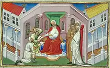 Los primeros contactos oficiales entre Europa y el Imperio mongol se produjeron entre el papa Inocencio IV y el gran Khan, a través de cartas y emisarios pasando a veces varios años para llegar a su destino.[31] En marzo de 1245, el papa Inocencio IV envió varias bulas, algunas de las cuales fueron entregadas al «emperador de los tártaros» por un emisario, el franciscano Giovanni da Pian del Carpine. En la bula Cum no solum, el papa Innocencio le pidió al líder mongol que se convirtiera al cristianismo y no matara más a los cristianos. También expresó el deseo de paz.[32] Sin embargo, el nuevo kan, Guyuk, instalado en Karakorum en 1246,[33] respondió al papa pidiendo que él y los líderes cristianos vinieran a rendir homenaje al poder de los mongoles.[30]