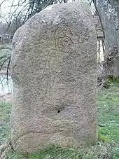 Sweyn se rebeló contra su padre, que gastó una exagerada cantidad de tiempo y dinero levantando una gran piedra en Jelling conmemorando sus logros. Un día, el rey Harald preguntó a un viajero si alguna vez había visto seres humanos mover un peso tan descomunal. "He visto a Sweyn llevarse a toda Dinamarca de ti. Juzga tú mismo cual de los dos lleva la carga más pesada."[16]