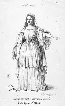Como prima donna tiple se presentó en el Teatro de la Cruz de Madrid en abril de 1839. La temporada se abrió con dos óperas de Bellini: Norma y La Straniera, en la que Cristina Villó interpretó el papel de Adelaide, calurosamente acogido por la crítica, que la puso al nivel de la Tosi.[12] Más entusiasta fue la crítica de la Norma. En El Correo Nacional, dedicada la reseña de la función enteramente a ella, sus dotes y aptitudes se caracterizaban en términos elogiosos: «su voz es dulce e insinuante; dice con sentimiento, a veces es tierna y profundamente melancólica [...] Su acción es desembarazada y expresiva, y cuando la situación lo exige sus actitudes son nobles y enérgicas. En la noche citada tuvo momentos de felicísima inspiración, y el público le dio repetidas y bien merecidas señales, no solo de benevolencia sino de entusiasmo, aplaudiendo en varios pasajes con afán, y haciéndola salir a la escena después de la plegaria tan sabida y siempre tan saboreada de casta Diva».[13]