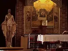 Representa a Jesús Resucitado, que parece elevarse con la mirada dirigida hacia lo alto. Plasma el momento de la Ascensión. Su tamaño es algo superior al natural y su policromía sigue los tonos de la madera natural. Albareda renunció a los habituales enyesados, dorados y policromados y trabajó la madera de manera que quedara prácticamente vista, con sus cualidades y texturas.