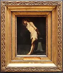 Según Diego Angulo, Zurbarán se podría haber basado en un grabado de Lucas Vorsterman, realizado a su vez sobre una pintura de Gerard Seghers. En el grabado de Vorsterman aparecen unos sayones, que Zurbarán habría omitido para dar mayor patetismo a la escena.[9] Jesucristo aparece atado a una columna baja, como recomendaban los exegetas después del Concilio de Trento. Su escultural figura destaca sobre un fondo oscuro y neutro, mientras que su rostro muestra el más profundo sentimiento. Cabe destacar la firmeza de la pincelada, la fuerza del colorido y la maestría de la iluminación. Aunque esta pintura recuerde al Cristo flagelado recogiendo su túnica —del año 1661— la figura es muy parecida a la de los Cristos crucificados realizados a partir de 1638-40, por lo que este lienzo podría pertenecer al último período sevillano del artista.[10][11]
