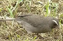Alcanza una longitud de aproximadamente 13 cm de largo. Su plumaje es predominantemente de color pardo grisáceo uniforme, más claro en las partes inferiores, y con una lista superciliar blanca. Tiene una parte blancuzca debajo de la barbilla.
