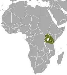 Se encuentra en Burundi, República Democrática del Congo, Kenia, Ruanda, Sudán del Sur y Uganda.