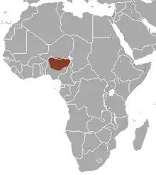 Se encuentra en Nigeria, Uganda y, posiblemente también, en la República Democrática del Congo, Etiopía y el Sudán.[1]