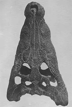 - Mook, C.C. (1921). «Description of a skull of a Bridger crocodilian». Bulletin of the American Museum of Natural History 44 (11): 111-116.