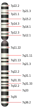 - VV. AA (2003). «The DNA sequence of human chromosome 7». Nature 424 (6945): 157-64. PMID 12853948. doi:10.1038/nature01782.