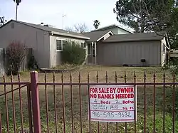 - 2006: El tipo de la Reserva Federal de los Estados Unidos aumentó hasta 5,75 %. En tres años, el tipo había aumentado del 2 % al 5,75 %.[6] Los préstamos subprime eran, por ese entonces, más a menudo a tipos variables e indexados al tipo decidido por el banco central. Los prestatarios, que eran cada vez más, no podían pagar sus plazos.[7] Sus hogares fueron vendidos en subasta y los resultados de esto fueron más bajas en los precios de la vivienda y, por tanto, en el valor de las hipotecas.[8] Entre 2004 y 2007, 1,2 millones de estadounidenses habían sido expulsados de sus hogares.