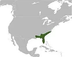 C. adamanteus es nativo del sureste de los Estados Unidos. Su área de distribución se extiende desde el sureste de Carolina del Norte, hacia el sur a lo largo de la llanura costera, a través de la península de Florida incluyendo los Cayos de la Florida, y al oeste a lo largo de la costa del Golfo de México por el sur de Misisipi y sureste de Luisiana. La descripción original de la especie no incluye una descripción de la localidad tipo, aunque Schmidt (1953) propone que ella se limite a "Charleston, Carolina del Sur" (EE. UU.).[2]