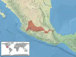 La especie se encuentra en la meseta del centro de México desde el sur de Zacatecas y el noreste de Colima al centro de Veracruz. Se produce a alturas entre 1450 y 2600 m (4,760 y 8,530 pies). Una restricción geográfica a "Tupátaro, Guanajuanto, México" fue propuesto por HM Smith y Taylor (1950).[2]