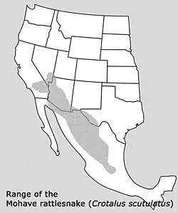 Crotalus scutulatus (nombres comunes: serpiente de cascabel del Mohave,[3][4][5] Verde del Mojave,[4] más.) es una especie de vipérido venenoso de la subfamilia Crotalinae. Se encuentra en los desiertos del Suroeste de Estados Unidos y del centro de México. Tal vez sea más conocida por un potente veneno neurotóxico.