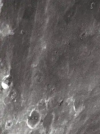 Por convención estos elementos son identificados en los mapas lunares poniendo la letra en el lado del punto medio del cráter que está más cerca de Crozier.