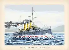 El Reina Regente fue un crucero protegido de la Armada Española, único de su clase, siendo el segundo buque con este nombre tras el hundimiento accidental del primer crucero protegido Reina Regente en 1895 cerca de Cádiz.[1] Tuvo un período de construcción muy largo, se inició en 1897, se botó en 1906 y finalmente entró en servicio en 1910.[2] El último crucero construido en España durante casi veinte años, estaba armado con una batería de diez cañones de 15 cm (5,9 pulgadas) y era capaz de alcanzar una velocidad máxima de 20 nudos (37 km/h; 23 mph).