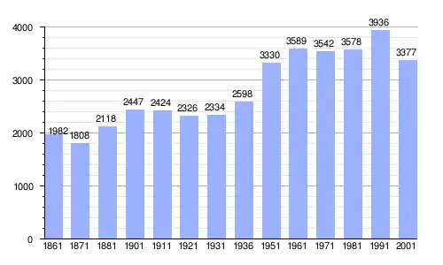 | Gráfica de evolución demográfica de Crucoli entre 1861 y 2001 |