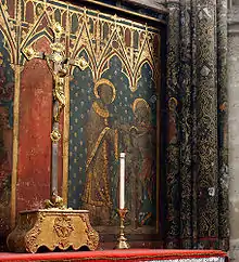 El fondo azul claro del altar data de 1976; Paul Clemen aún lo describía como rojo en 1937.[14]