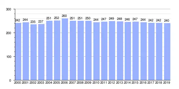 | Gráfica de evolución demográfica de Cuíña entre 2000 y 2019 |