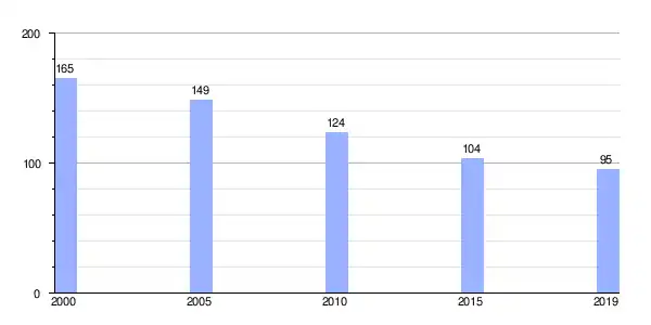 | Gráfica de evolución demográfica de Cuíñas (parroquia) entre 2000 y 2019 |