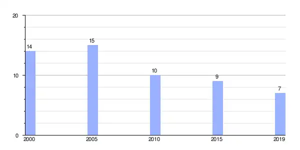 | Gráfica de evolución demográfica de Cuíñas (aldea) entre 2000 y 2019 |